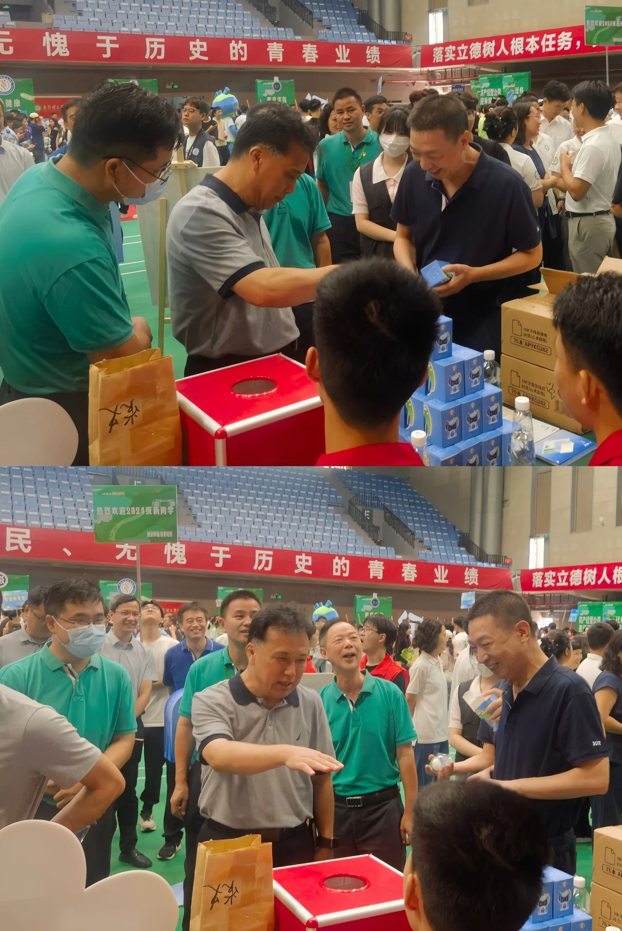 东莞理工学院校长马宏伟,校党委副书记李忠红等领导一行来到迎新点指导工作,与大家沟通交流。