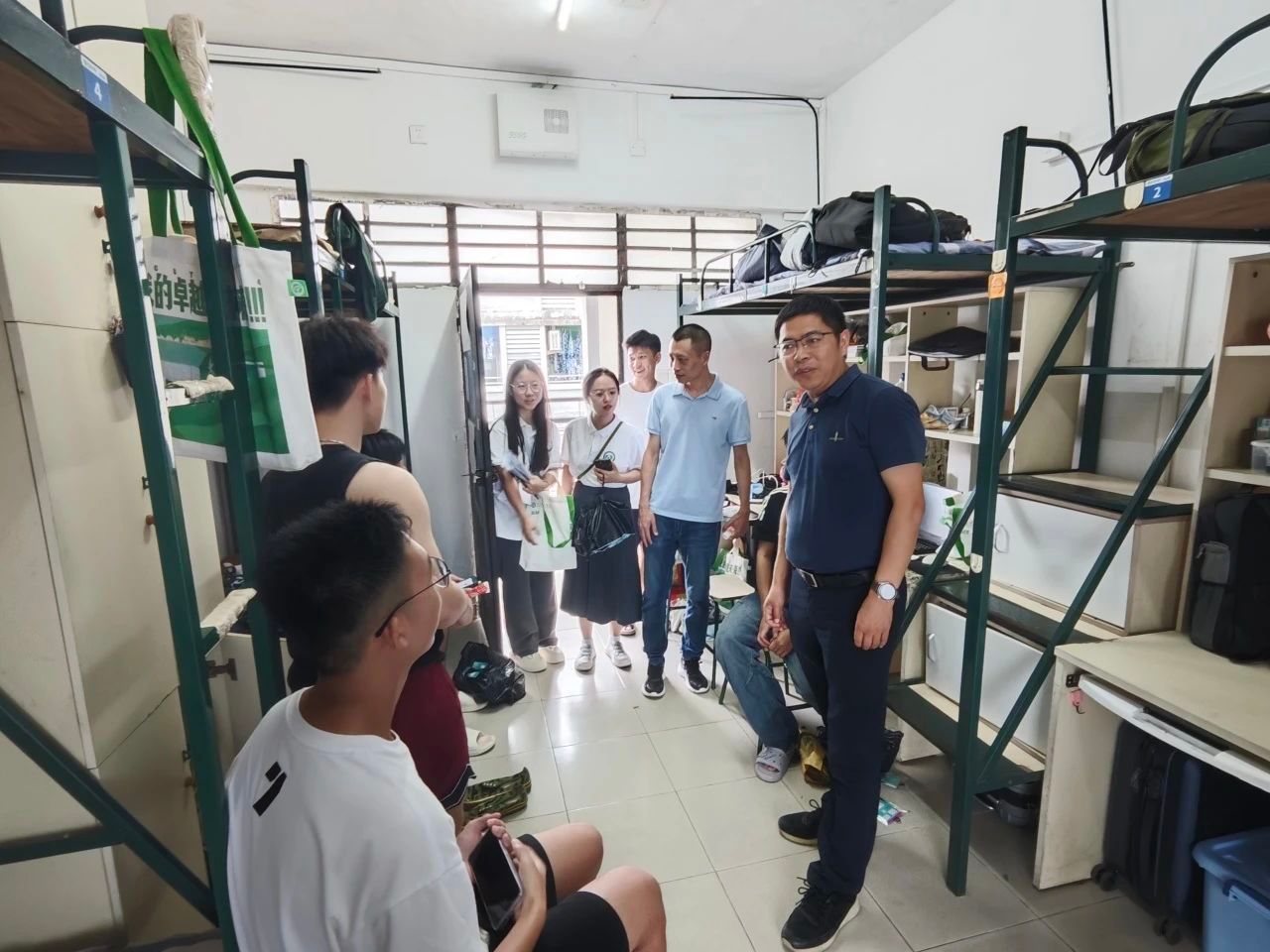 院领导、新生班主任、辅导员、助班走访新生宿舍,关心问候新生入住情况。