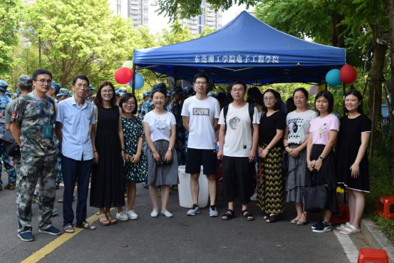 虽是初秋,烈日当空。9月10日上午,电子工程与智能化学院党委书记邓成良和全体辅导员、新生班主任来到真草训练场对同学们进行慰问,并为在军训中努力训练的学子们“送清凉”。