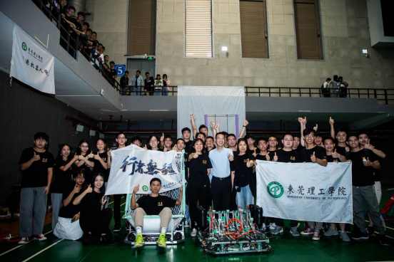本届ROBOCON 大赛以“绿茵争锋”为主题,吸引了包括武汉大学、西安交通大学、北京航空航天大学、东北大学等全国 81 所高校报名参赛。在本次比赛中,行者机器人队代表东莞理工学院参加比赛,稳扎稳打,一路披荆斩棘,在仅八个队伍参加的热身赛中崭露头角;在正式比赛中,抛球及踢球两个动作都获得满分,且获得高达334分时间分的分数,最终在一众“985”、“211”大学中脱颖而出,以第十一名的成绩荣获全国一等奖,甚至战胜了蝉联四届ROBOCON冠军的东北大学。这也是该队伍第四年取得国赛一等奖的好成绩。行者队展现出不懈努力、精益求精、不断突破的精神,让全国各大高校见识到东莞理工学院代表队的风貌,让全国院校看到东莞理工学院新工科教育的累累硕果和建设高水平理工科大学的决心。