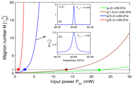 遵循摩尔定律发展的现代电子器件尺寸越来越小,芯片中因电荷高速运动和频繁碰撞带来的严重发热,不但造成高能耗,同时限制芯片处理速度与集成化程度的提高,成为阻碍当前电子器件发展的一个严重问题。磁振子,即自旋波量子,可望在后摩尔时代器件的发展中作为信息载体有着诱人的应用前景,已经成为凝聚态物理与量子光学领域中一个重要的前沿课题。近年来,磁振子及其相关量子系统研究进入到非线性领域。本方向主要研究磁振子频率梳的产生、磁振子激光的产生、磁力混沌、超慢自旋波调控等。