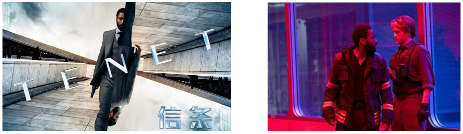 据了解AiNET团队拥有丰富的产学研经验,本文成果一中低功耗感知系统的相关工作即起源于以往刘新宇博士和周清峰教授团队对可穿戴设备的研究。本文成果二中,刘新宇博士引入宏观运动时间反演对称性的想法源于几年前观看诺兰科幻电影《信条(Tenet)》(图6)后的启发,电影中对时间正演与反演的描绘为该项工作提供了灵感,因此在发表的论文成果中也将电影中用于区分时间正反演的红色与蓝色(图6)用于标记时间正反演下的轨迹重建(见图4与图5)。