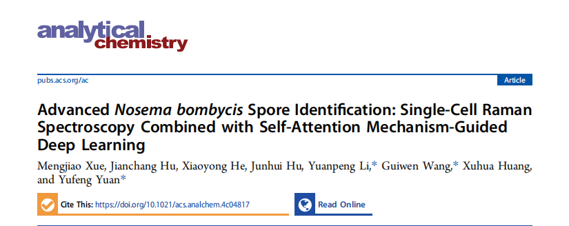 袁玉峰研究员团队在在美国ACS旗下分析化学领域顶级期刊《Analytical chemistry》发表题为“Advanced Nosema bombycis Spore Identification: Single-Cell Raman Spectroscopy Combined with Self-Attention Mechanism-Guided Deep Learning”的研究论文。该成果以东莞理工学院为第一完成单位,袁玉峰研究员联培硕士生薛梦娇为论文第一作者,袁教授与广西科学院王桂文研究员、广西师范大学黎远鹏副教授为论文共同通讯作者。