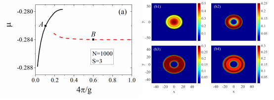 (b3,b4)拥有环形基态分量的半涡旋量子液滴。