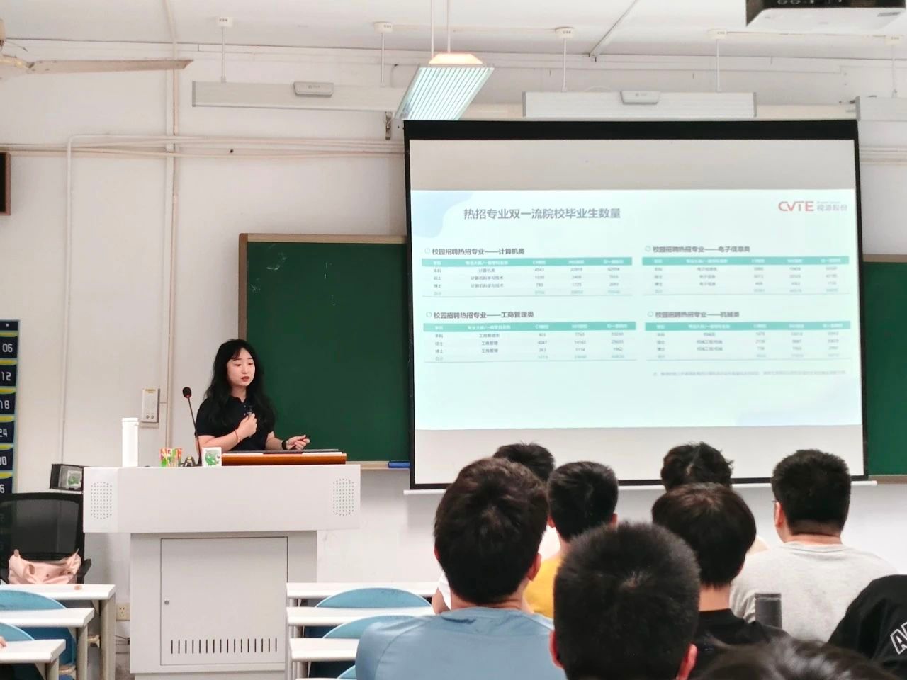 视源股份校友范乾烜围绕专业能力成长,详细介绍了公司的发展历程、彩乐园、招聘岗位及福利待遇,拆解职级晋升通道,生动呈现职场新人成长图谱。同时,他还分享了招聘过程中的心得和经验,让同学们对即将到来的求职季充满了信心。