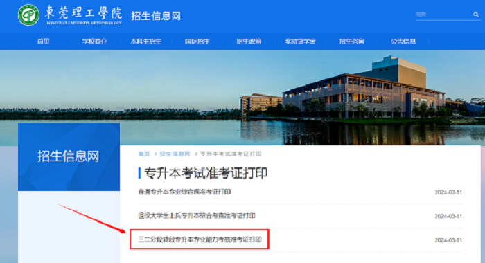 1.登录“东莞理工学院招生信息网”//zsb.dsncly.com/,点击“准考证打印”。