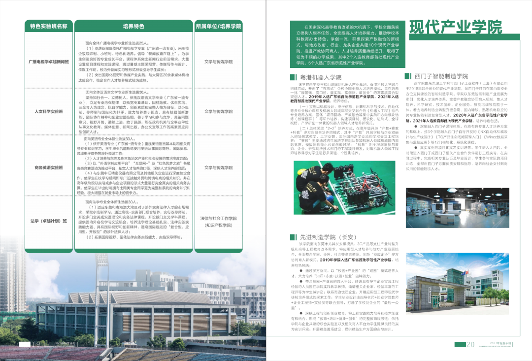 在国家深化高等教育改革的大机遇下,学校全面落实立德树人根本任务,全面提高人才培养能力,推动学校本科教育办出特色,争创一流,积极探索产教融合的新模式,与地方政府、行业、龙头企业共建10个现代产业学院,推进产教协同育人,人才培养质量持续提升,取得了较为丰硕的办学成果,其中2个入选教育部首批现代产业学院、5个入选广东省示范性产业学院。