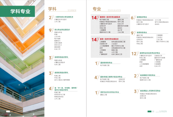 设有20个二级学院、59个本科招生专业,11个硕士学位授权点(其中,学术学位:计算机科学与技术、土木工程;专业学位:资源与环境、机械、土木水利、电子信息、能源动力、生物与医药、材料与化工、国际商务、社会工作)。