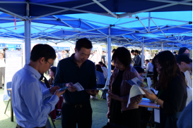 相关专业对口的公司前驻足,仔细查看招聘信息,并与东莞市冠佳电子设备有限公司、广州程星通信科技有限公司、深圳市聚飞光电股份有限公司、东莞市宇瞳光学科技股份有限公司、东莞市长园高能电气股份有限公司、东莞市韦安自动化科技有限公司、华视智能科技有限公司(校友企业)等多家企业交谈,了解企业用工需求、探讨校企合作、互留联系方式。