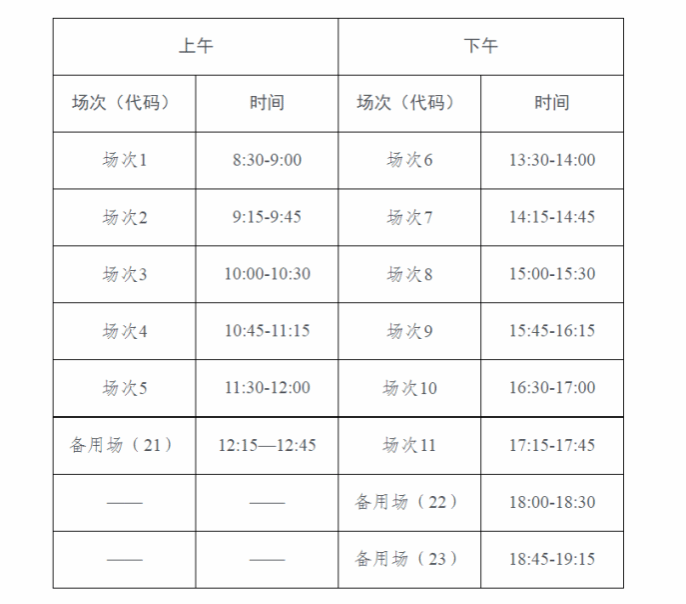 一、考试时间及场次安排