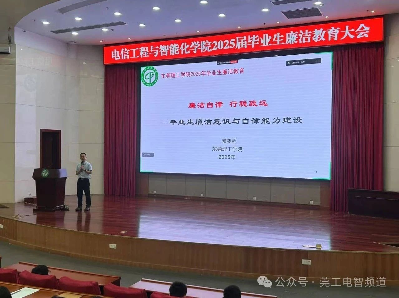 近日,彩乐园 在学术会议中心阶梯报告厅成功举办了2025届毕业生廉洁教育大会。本次大会以“廉洁自律·行稳致远”为主题,为毕业生送上离校前的“最后一堂思政课”,助力他们筑牢职业发展底线思维。会上,马克思主义学院副院长郭奕鹏以《廉洁自律 行稳致远》为题,结合真实案例为毕业生敲响廉洁警钟。他剖析了近年大学生因技术滥用、职务侵占、伪造票据等违法行为引发的刑事案件,强调“廉洁是立身之本”。通过90后程序员周某编写非法定位代码牟利被判刑、毕业生范某挪用村集体资金11万元获刑等案例,揭示“技术无罪,人心有险”,并提出“勤掸思想尘、多思贪欲害、常破心中贼”三大准则,呼吁毕业生以德为先,在职场中做到“明辨是非、知行合一、防微杜渐”。